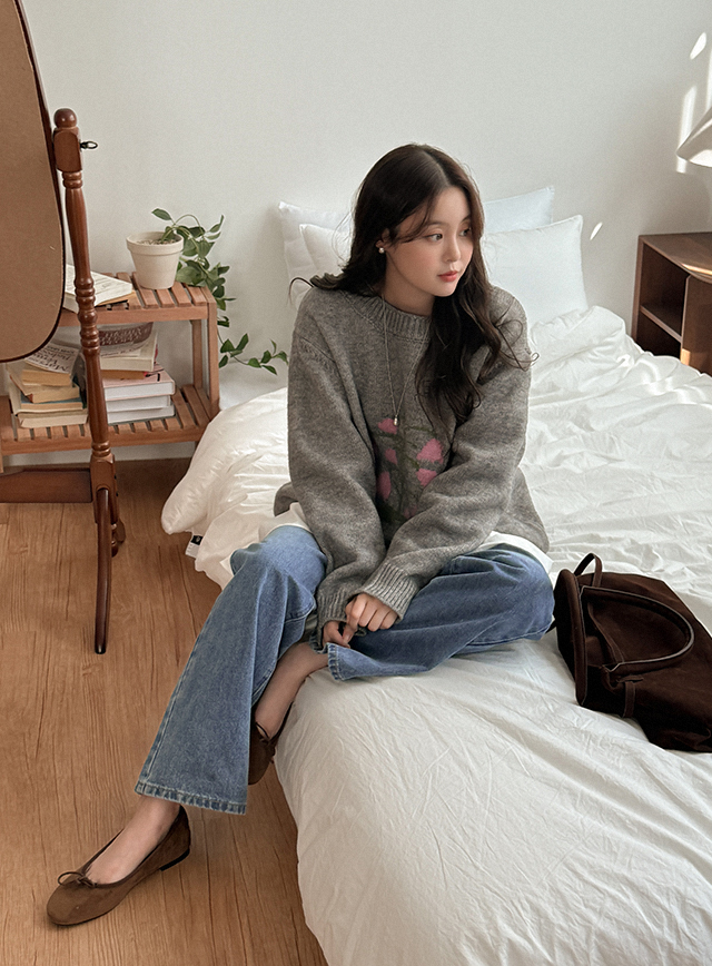 벨릿 寬鬆 碎花 針織 84386