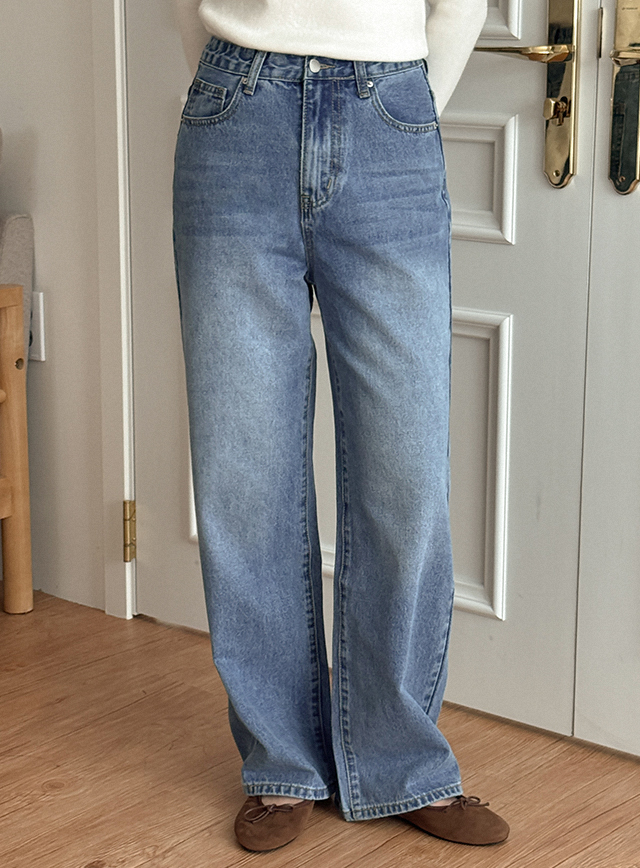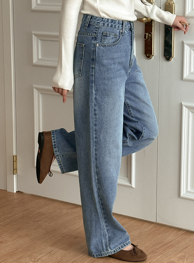 [3가지기장] 블루니 水洗 寬 牛仔 褲 84387