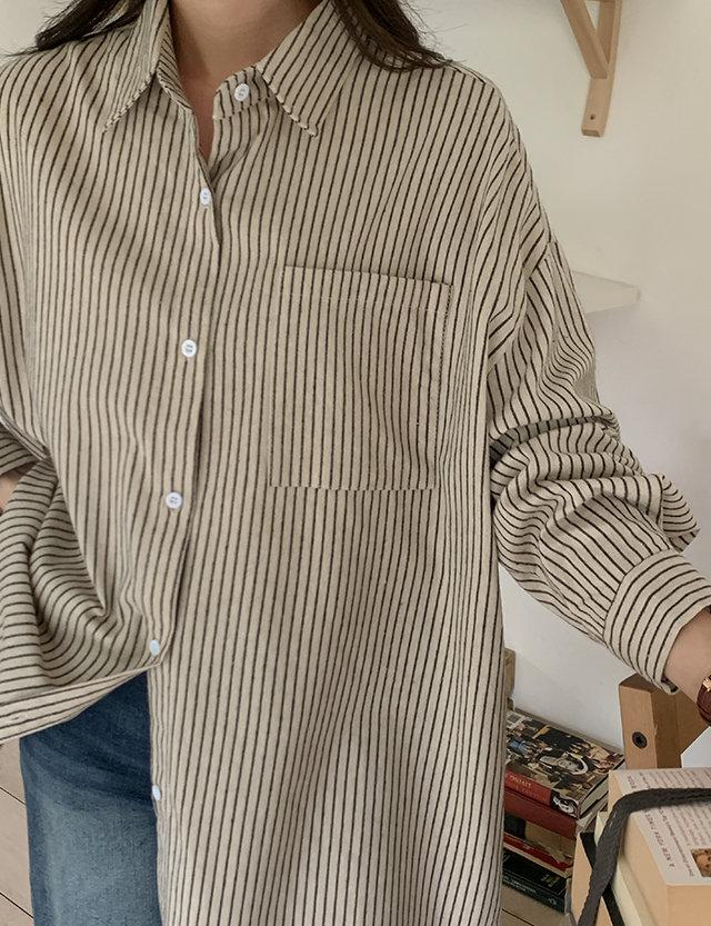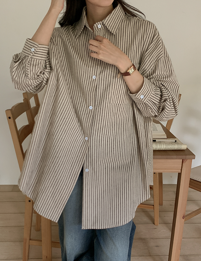 [09초이스][체형커버] 내품안에 쏙 리얼루즈핏 條紋 襯衫 84364