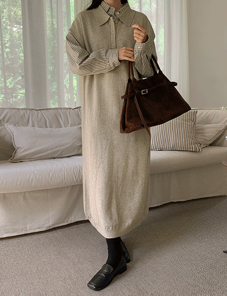 애벌즈 領口 針織 長款 洋裝 84363