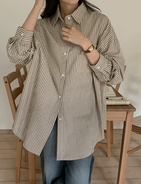 [09초이스][체형커버] 내품안에 쏙 리얼루즈핏 條紋 襯衫 84364