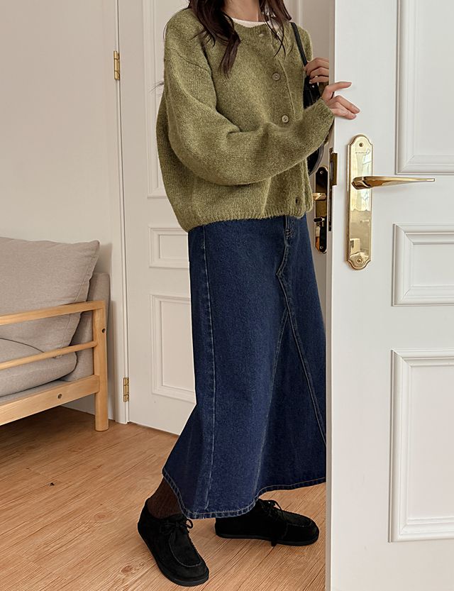 눈이가요 圓領 寬鬆 羊毛 開襟外套 84460