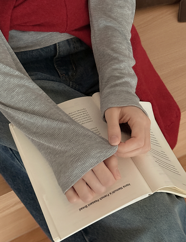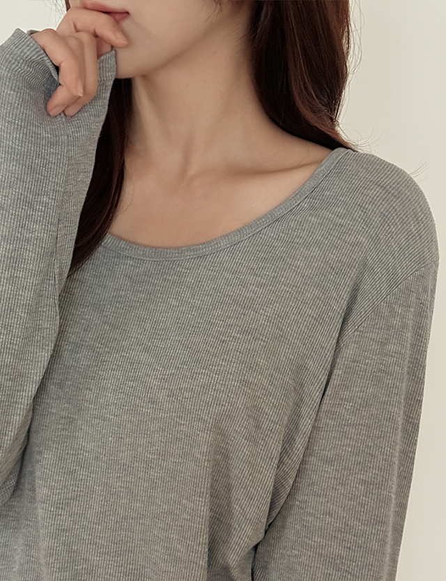 뮤딘 羅紋 유넥 長袖 T恤 84397
