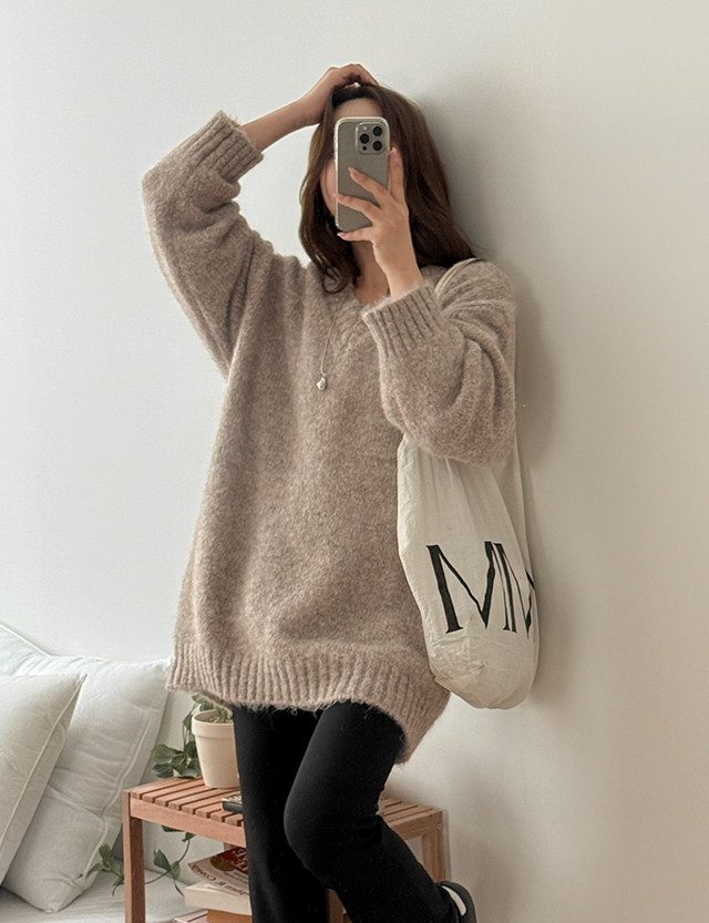 엘무 寬鬆 羊毛 V領 針織 84406