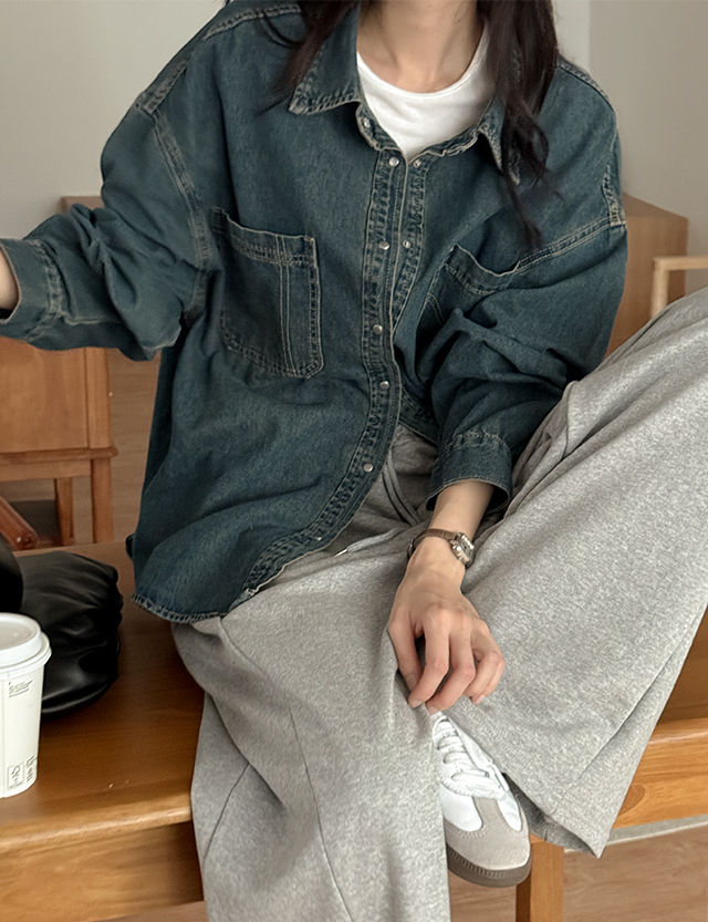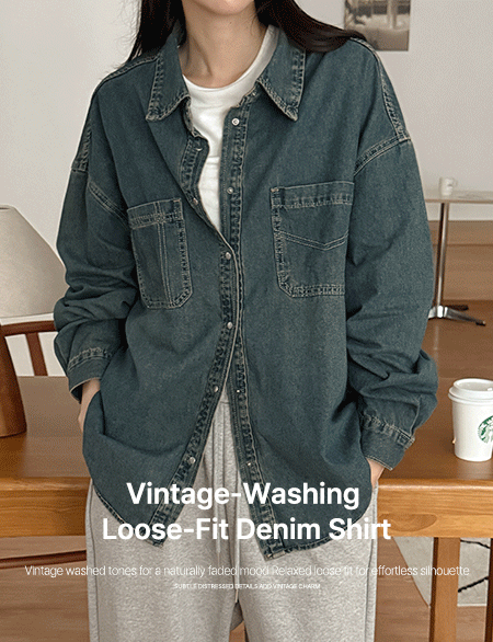 復古/仿舊 水洗 寬鬆 牛仔 襯衫 84413