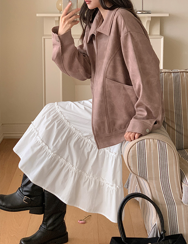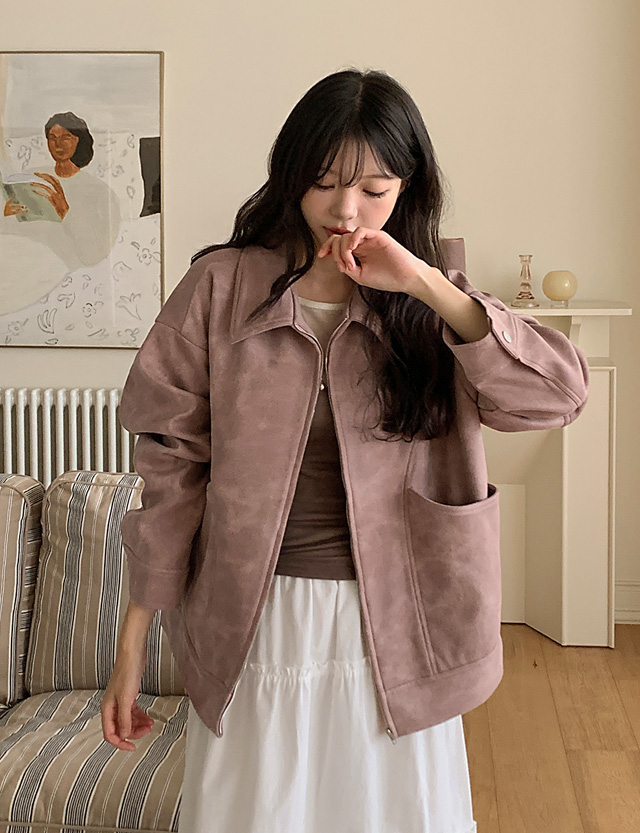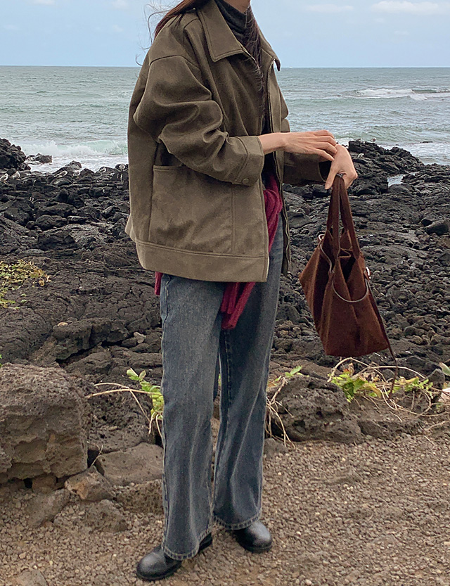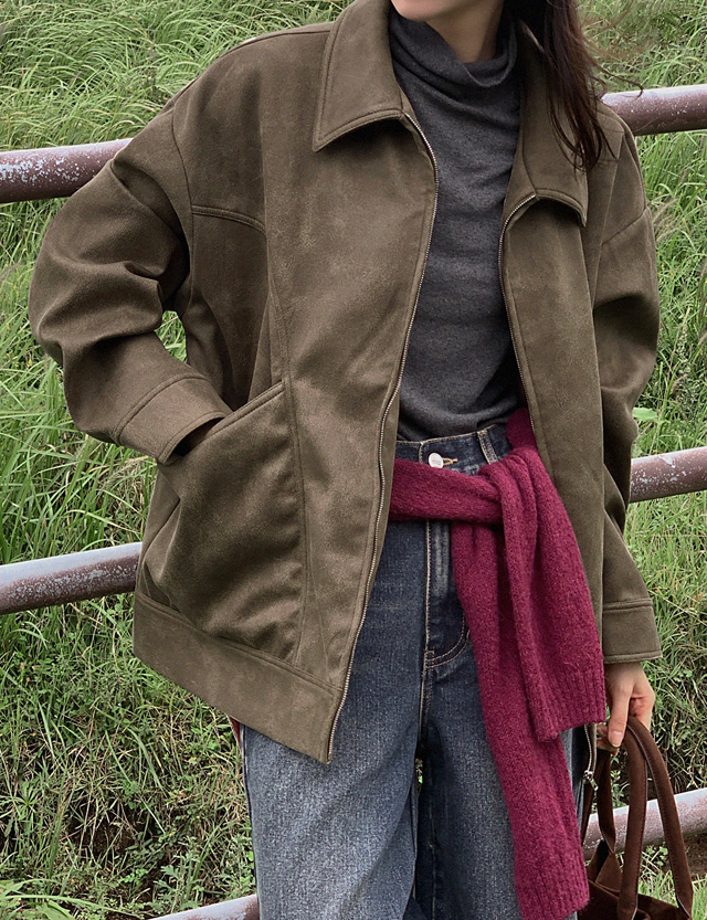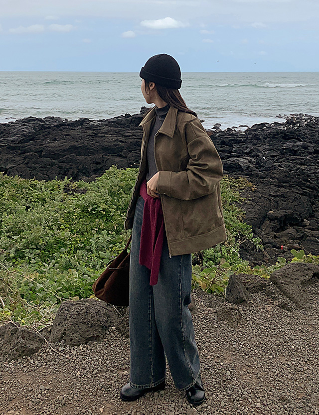 셋오프 크랙 레더 寬鬆 拉鏈外套 84195