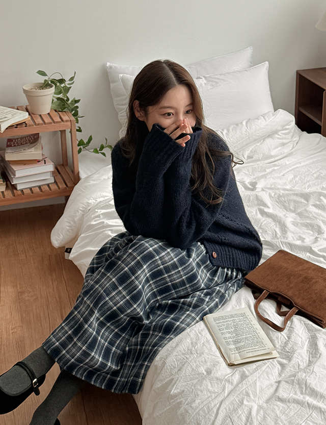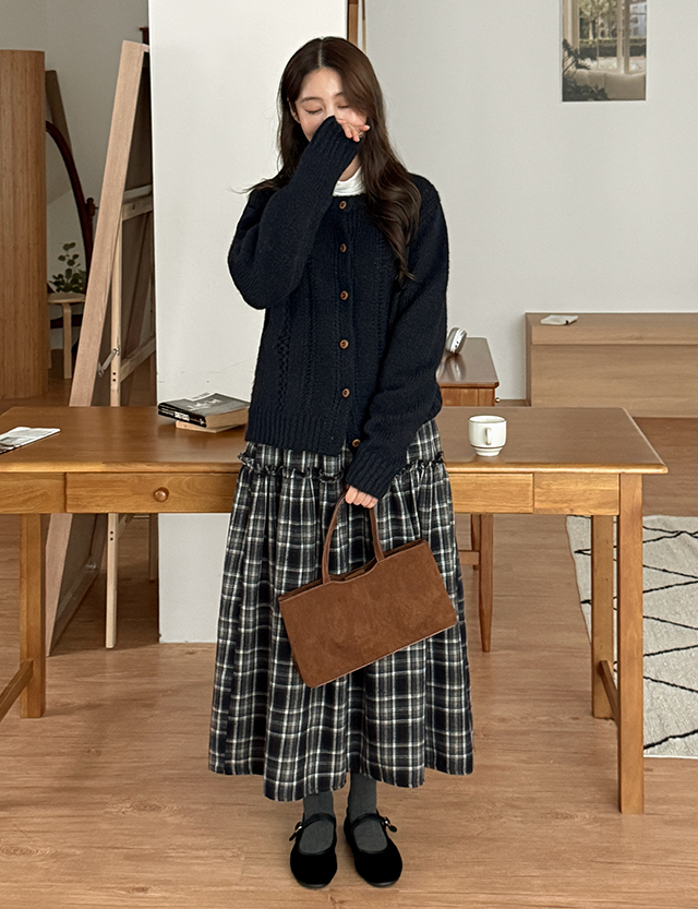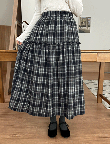 토스티 荷葉裙 格紋 鬆緊腰 長裙 84382