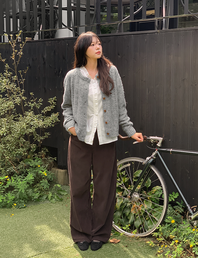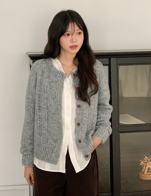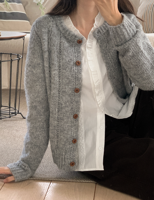 마비린 印花 보카시 리사이클 羊毛 針織 開襟外套 84319