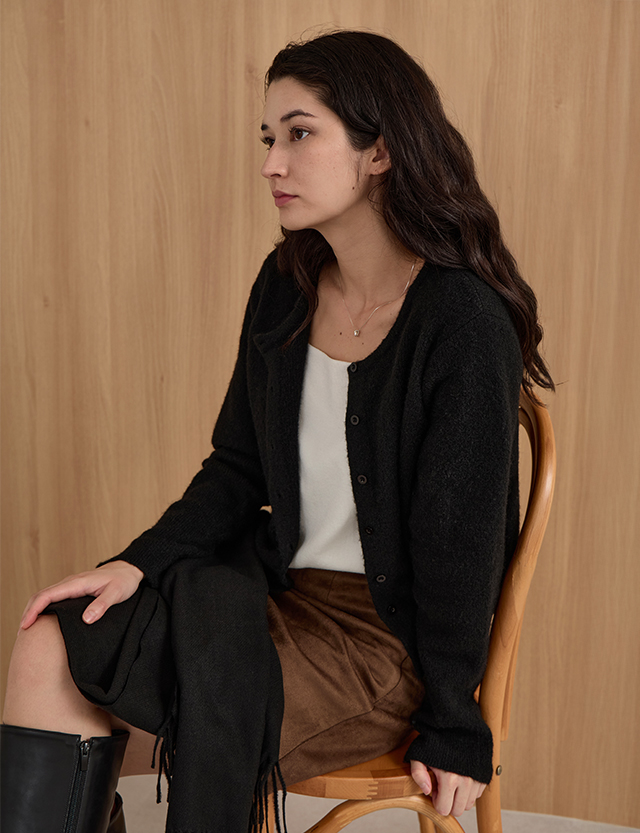 [일체형] 이너 필요 없는 背心 分層 羊毛 針織 開襟外套 84281