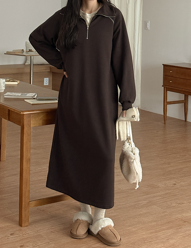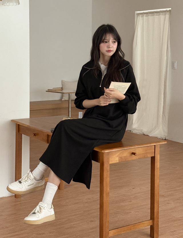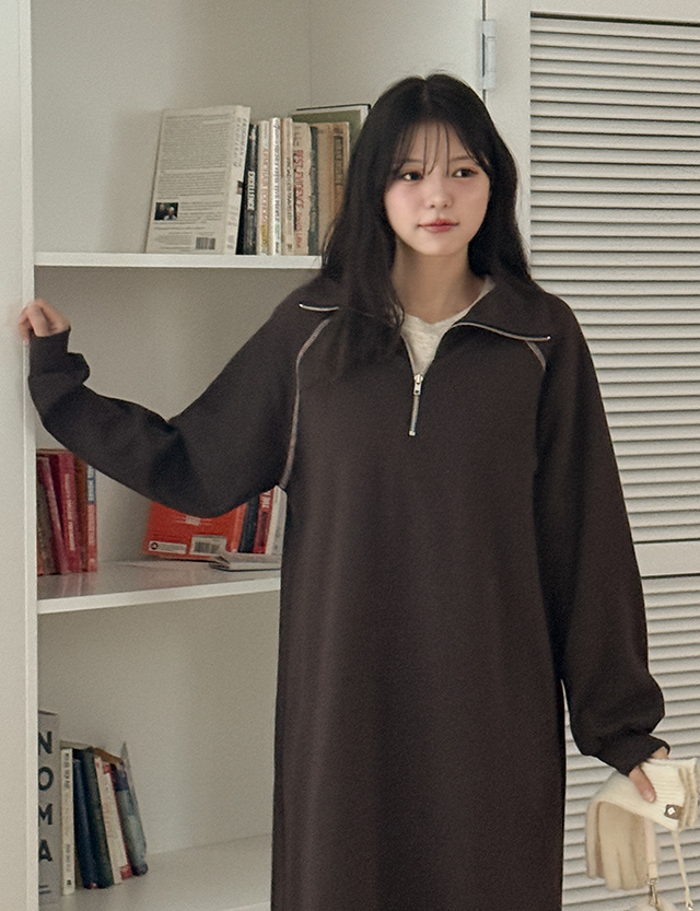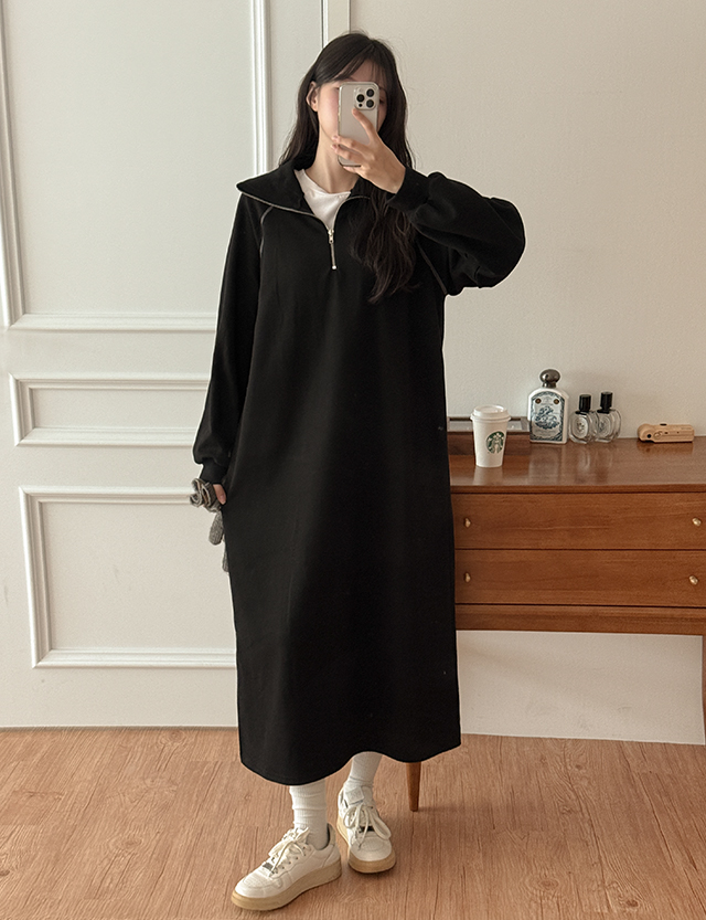런플리 寬鬆 半拉鏈 長款 洋裝 84554