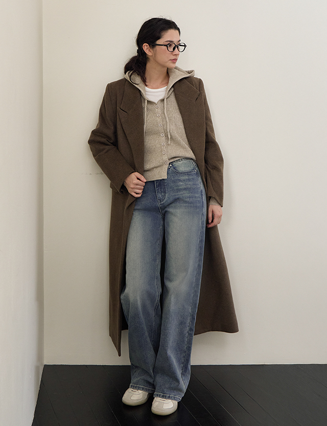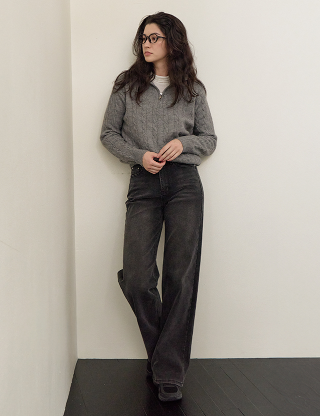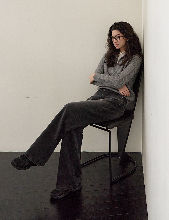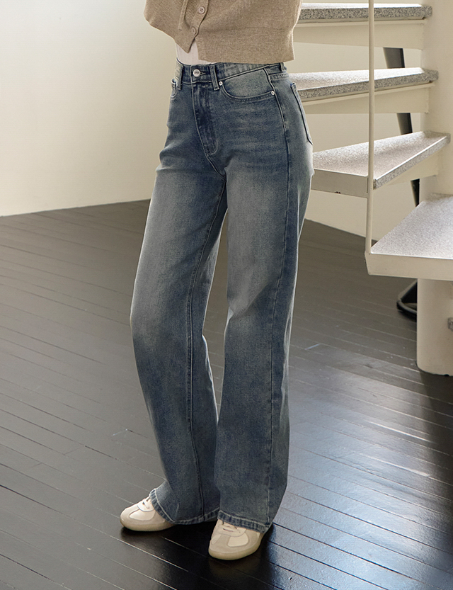 퍼그 水洗 鬆緊腰 세미와이드 彈力 牛仔 褲 84569