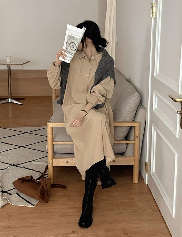 밀키드 寬鬆 長款 襯衫 洋裝 84411