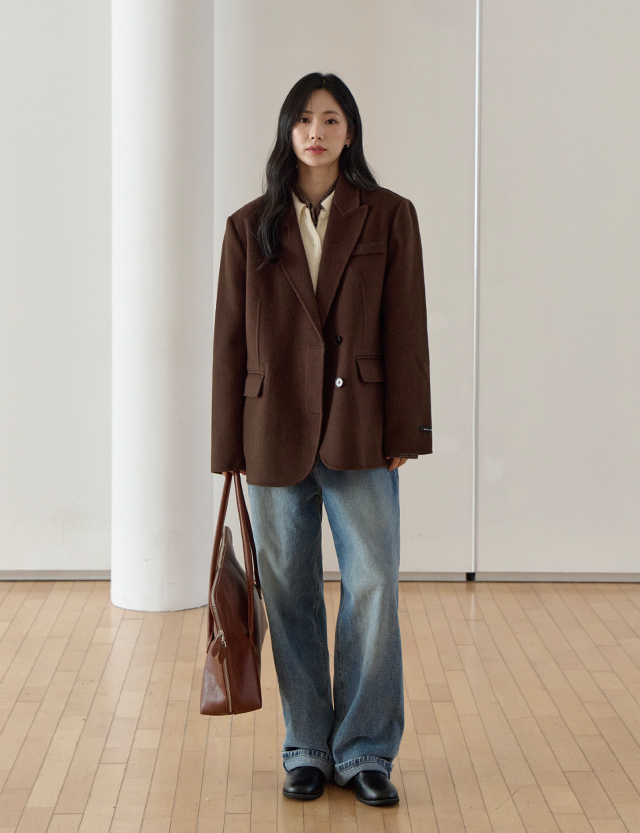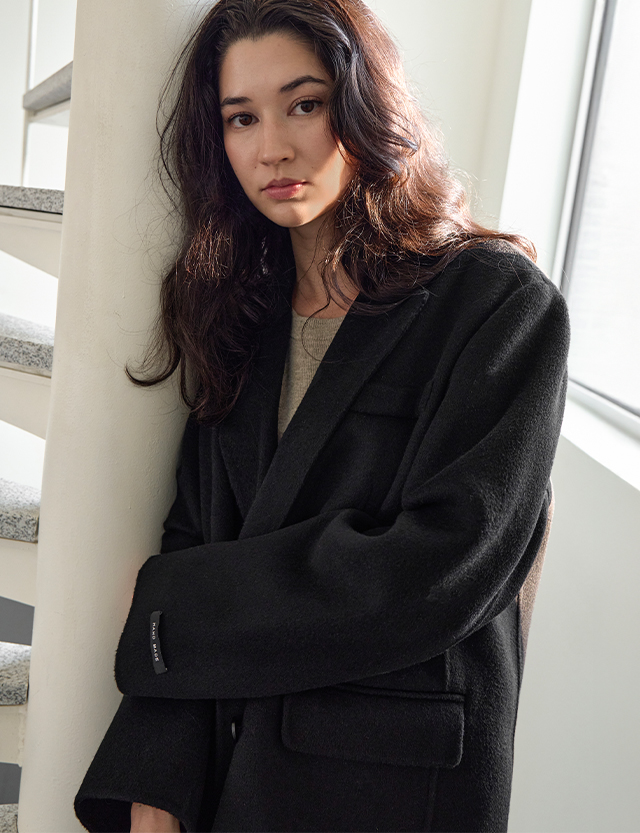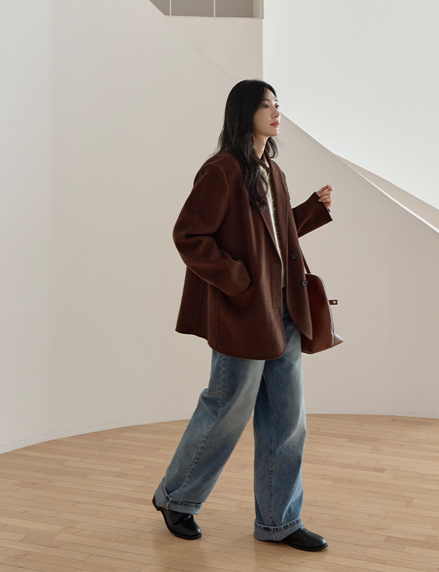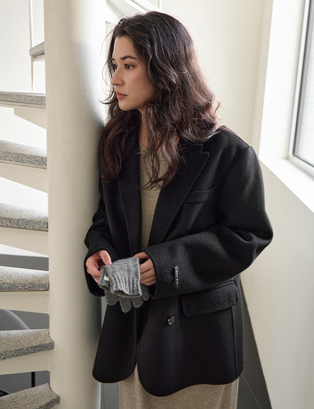 [羊毛 100%] 데이먼 寬鬆 羊毛 핸드메이드 外套 84548