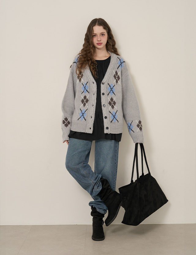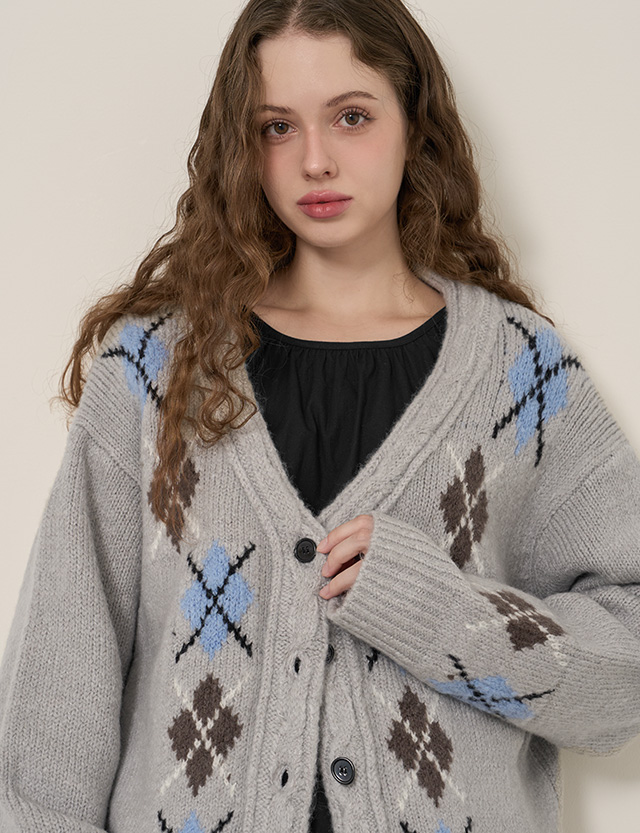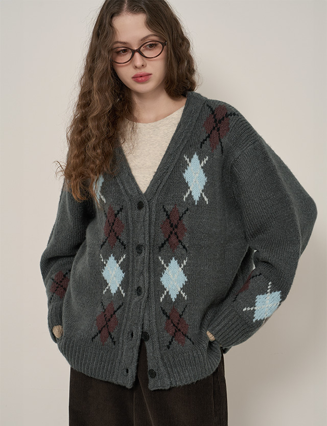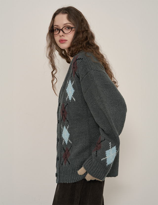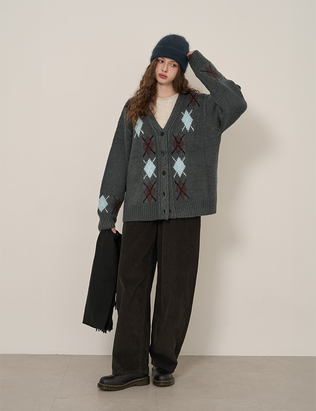 디프런 아가일 寬鬆 V領 羊毛 針織 開襟外套 84637