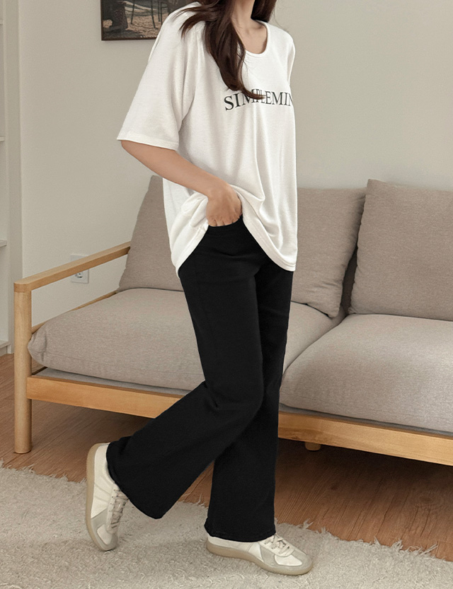 퀸샤 加絨 簡單 字母印花 短袖 T恤 84634