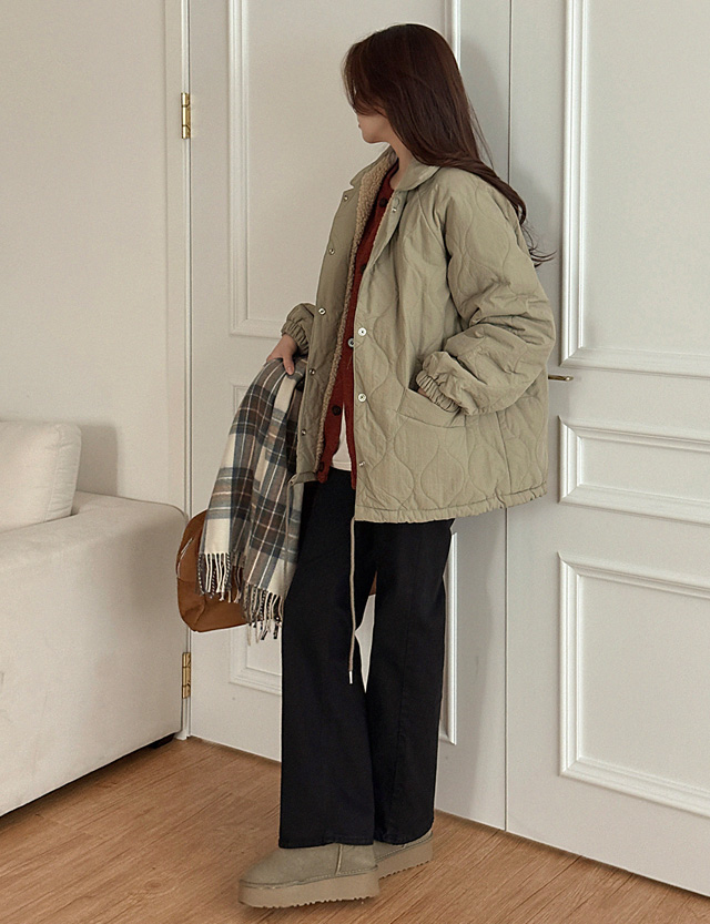 멜로체 領口 퀄팅 羽絨服 拉鏈外套 84632