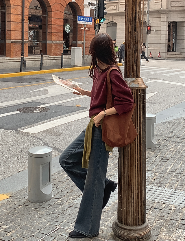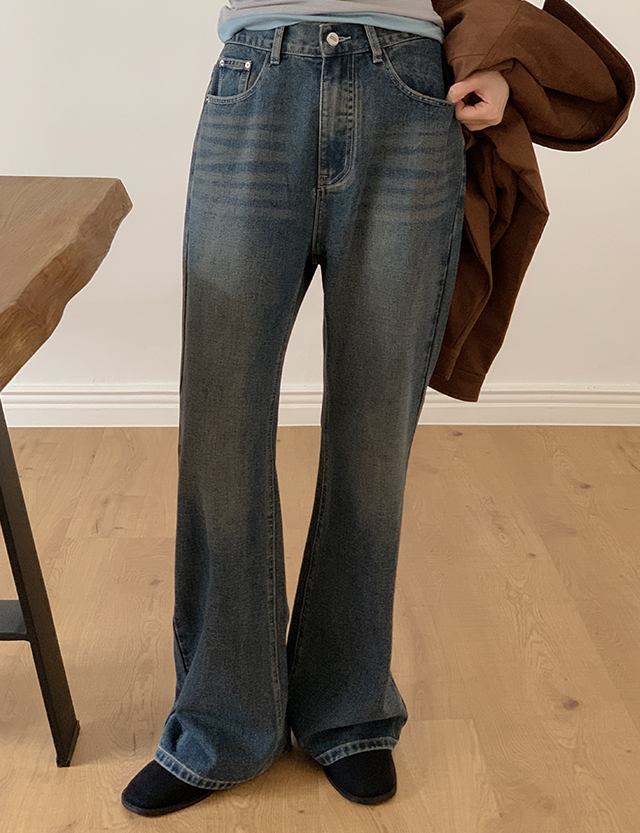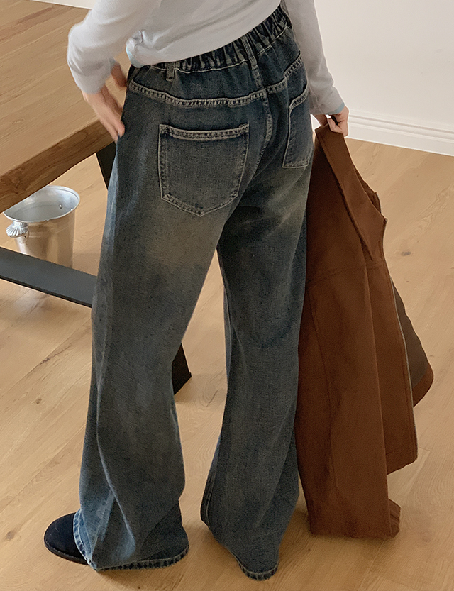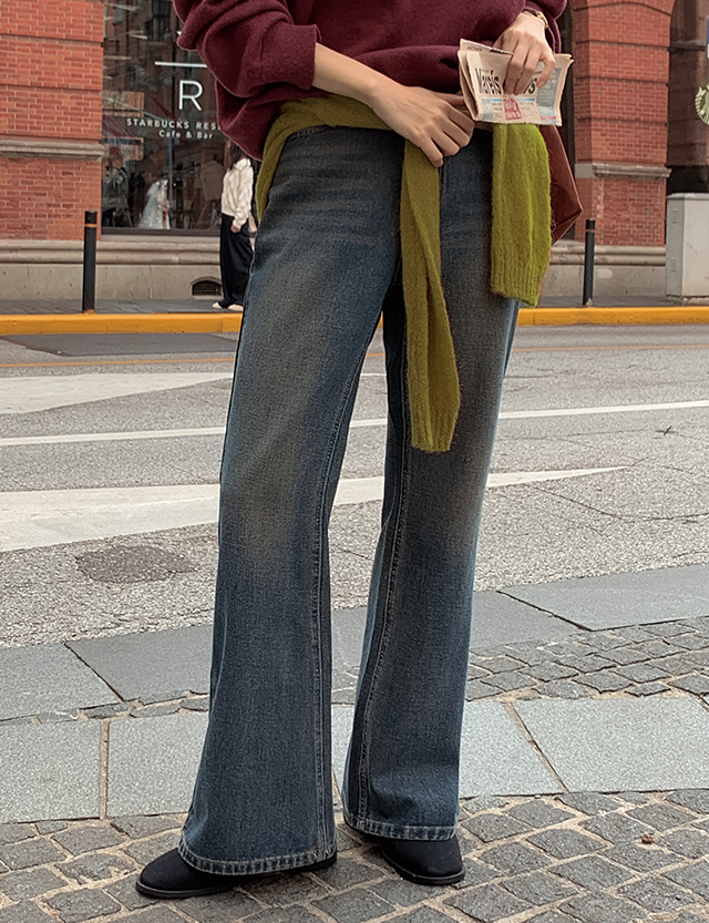 허넷 鬆緊腰 寬 喇叭 牛仔 褲 84570