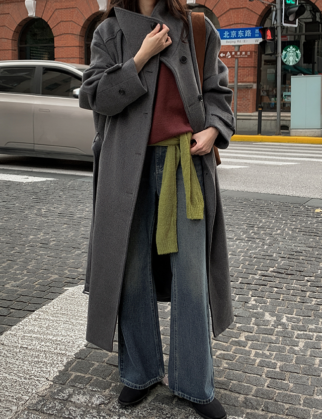 루이비 高領 長款 羊毛 呢子大衣 84628