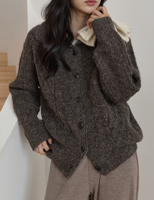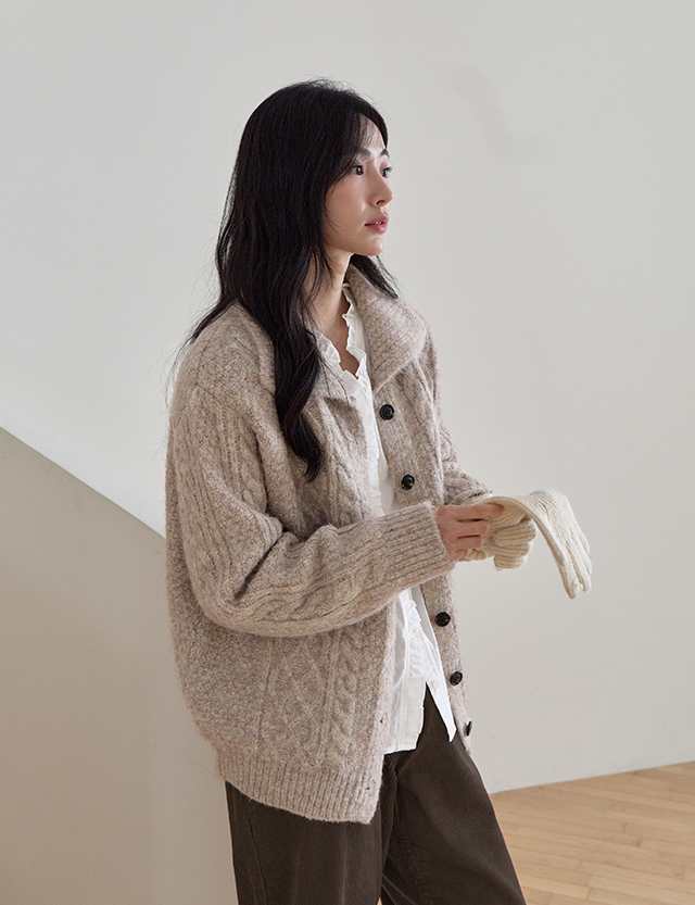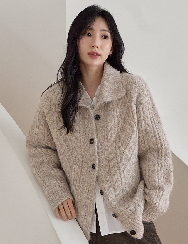 브링 寬鬆 보카시 麻花型 針織 開襟外套 84544