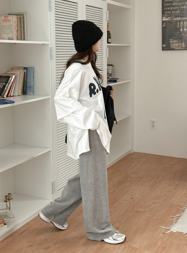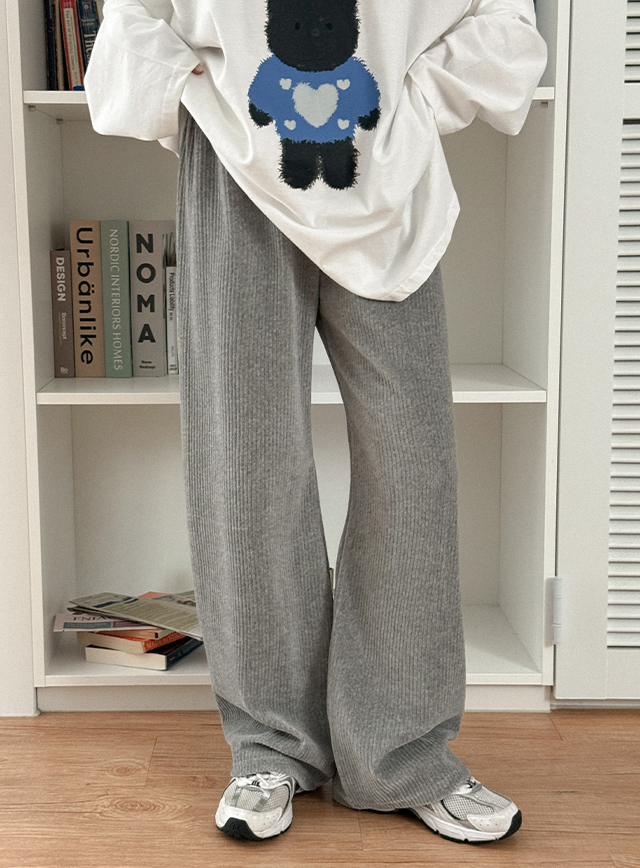 포그니 鬆緊腰 寬 羅紋 褲 84666