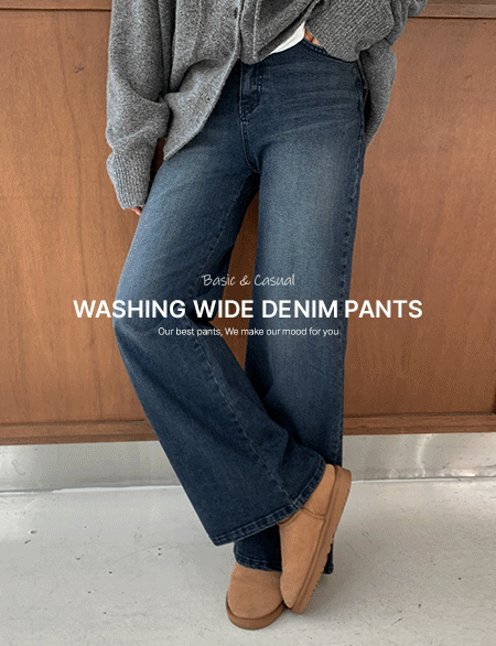 달브 水洗 鬆緊腰 寬 牛仔 褲 84701