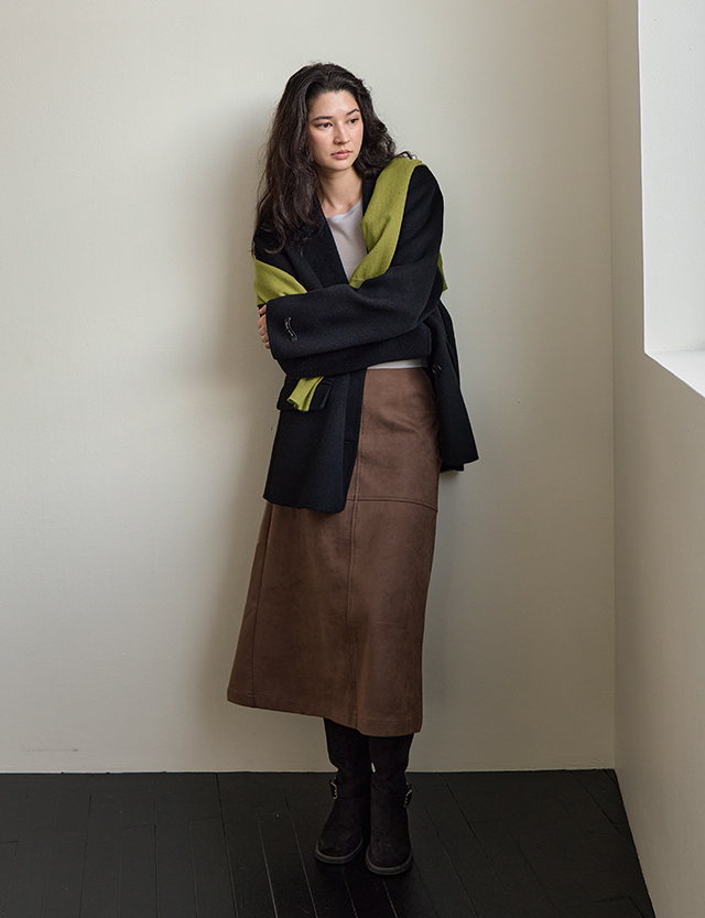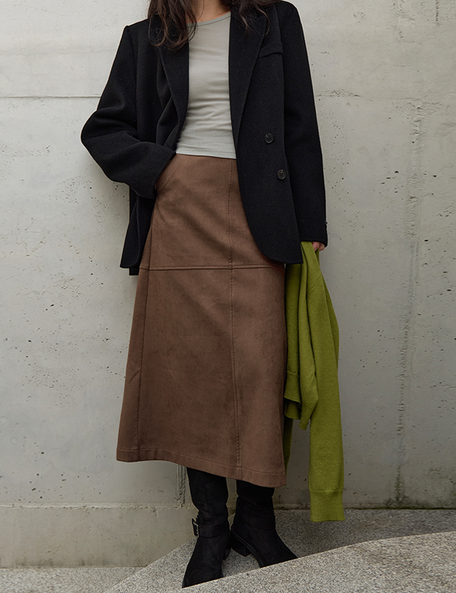 파미트 鬆緊腰 翻毛皮 長裙 84543