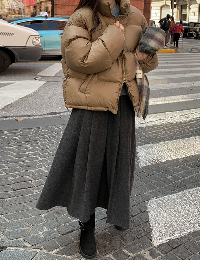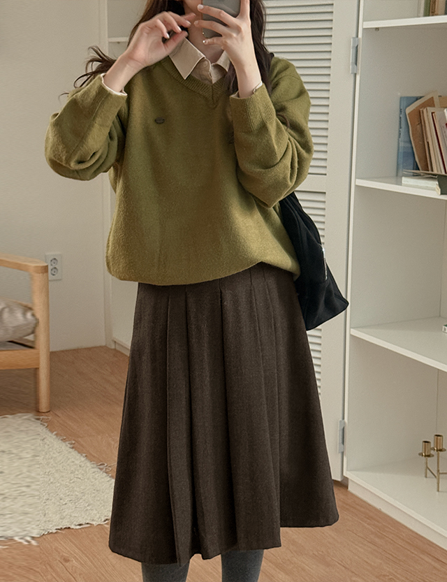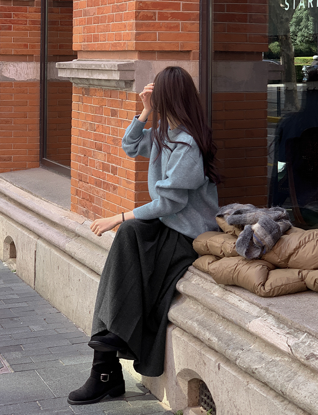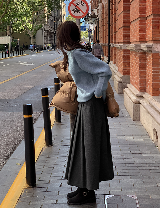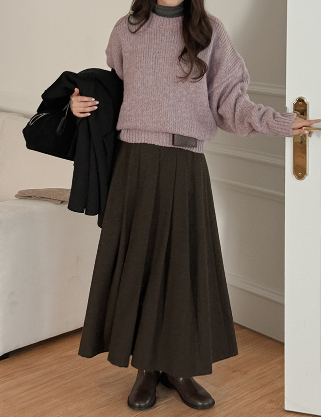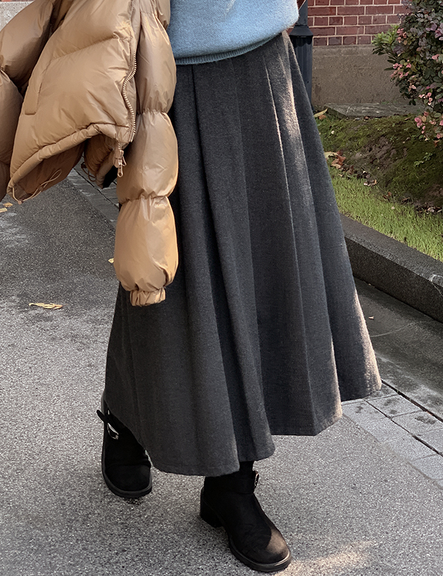 노블릿 헤링본 羊毛 百褶 미디앤長裙 84721
