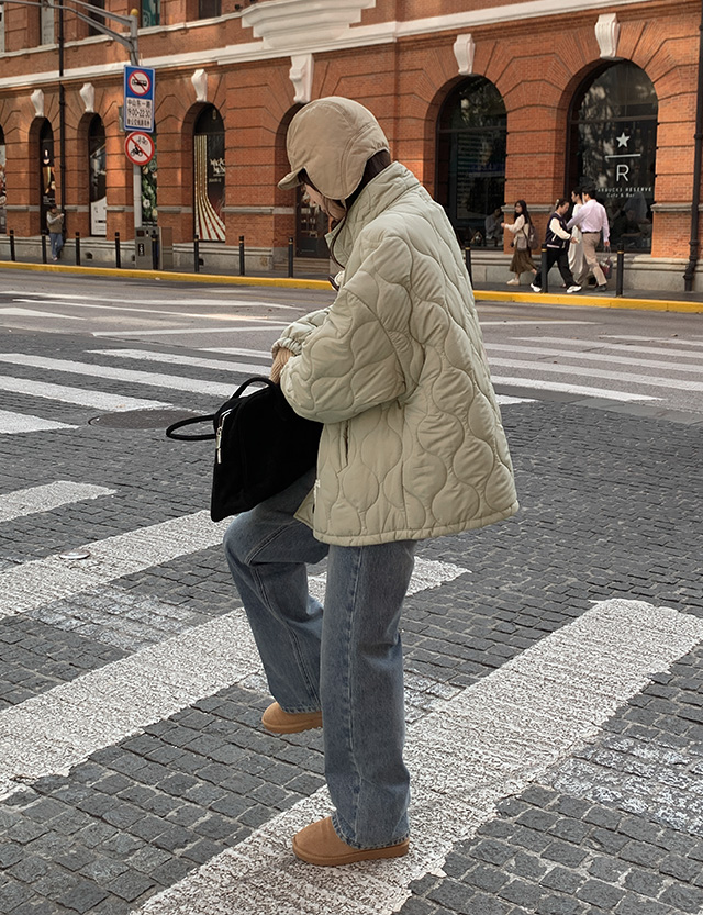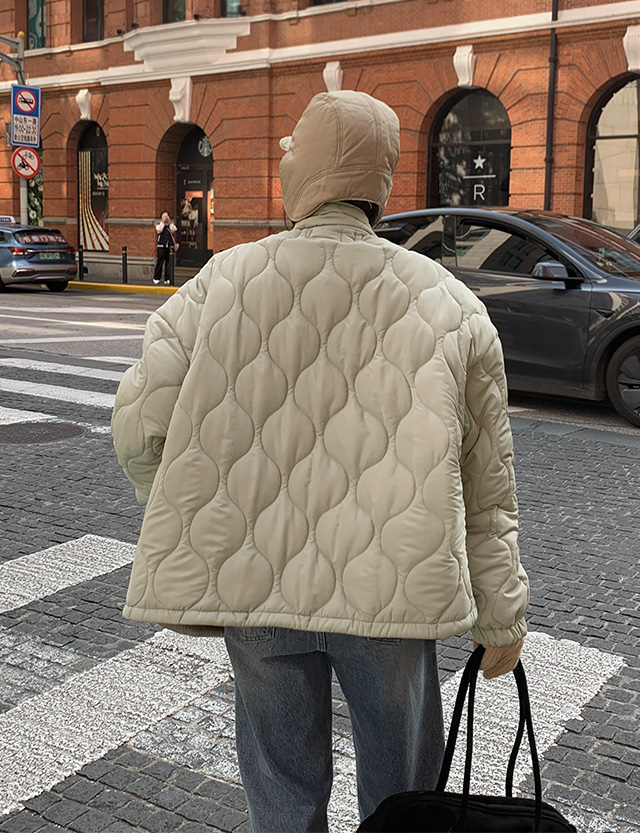 데로우 寬鬆 鋪棉 拉鏈外套 84725