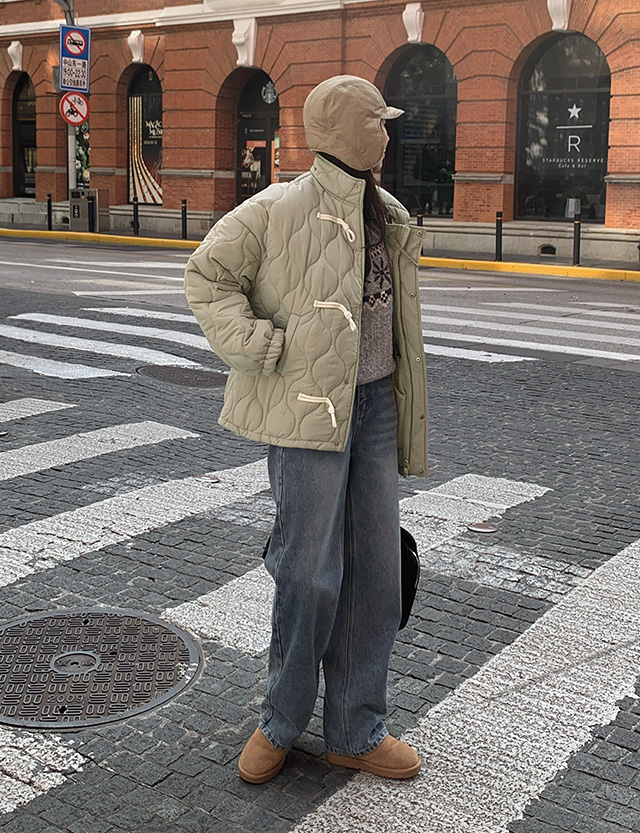 데로우 寬鬆 鋪棉 拉鏈外套 84725
