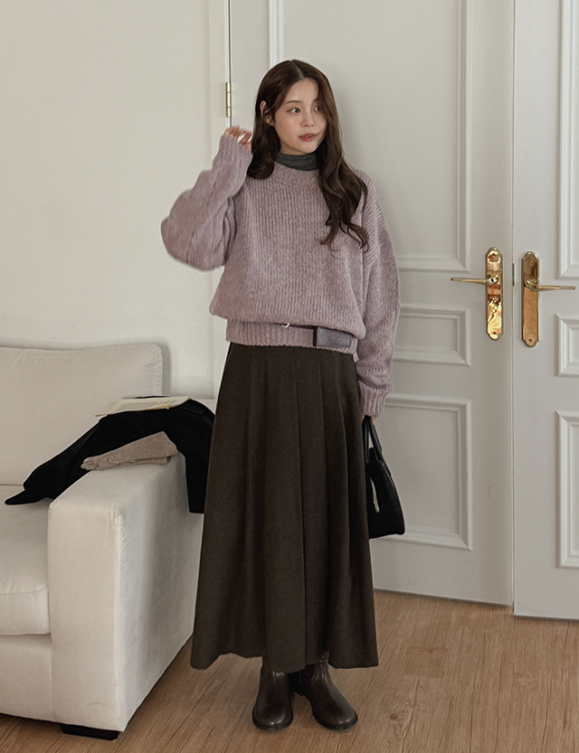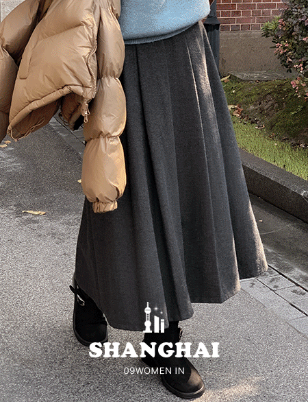 노블릿 헤링본 羊毛 百褶 미디앤長裙 84721