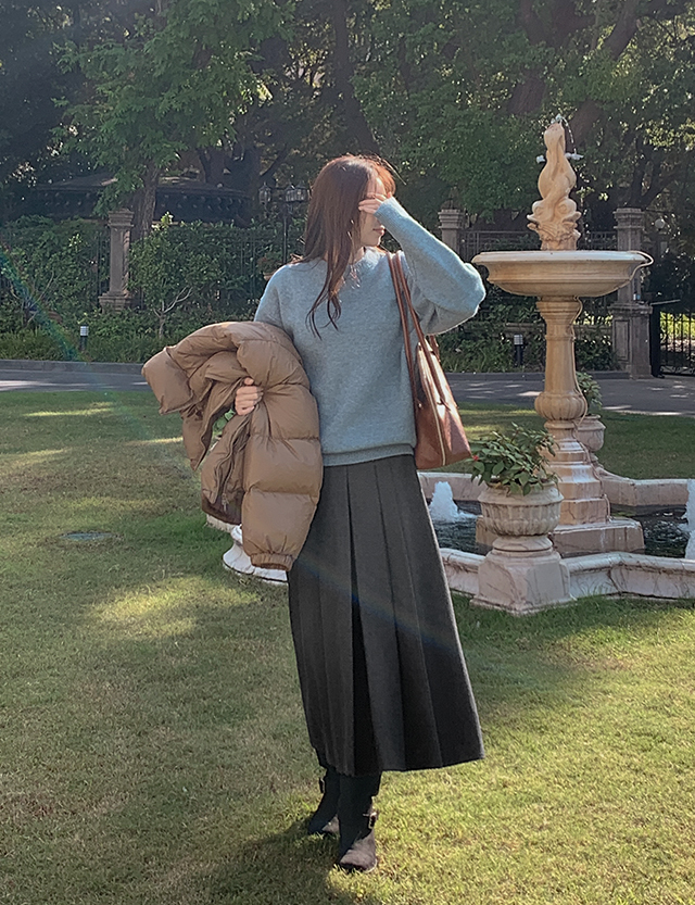 노블릿 헤링본 羊毛 百褶 미디앤長裙 84721