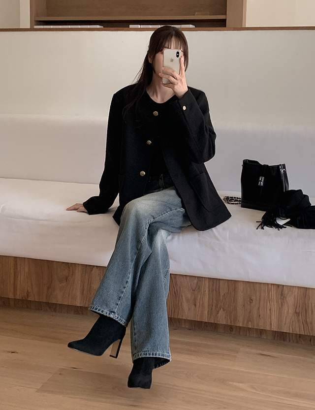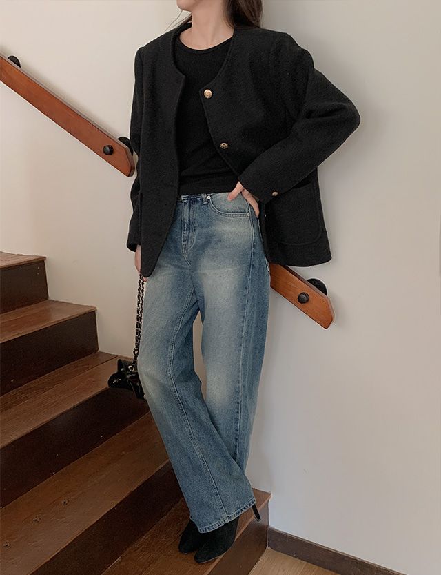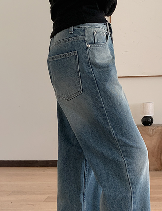 루잼 復古/仿舊 寬 牛仔 褲 84777