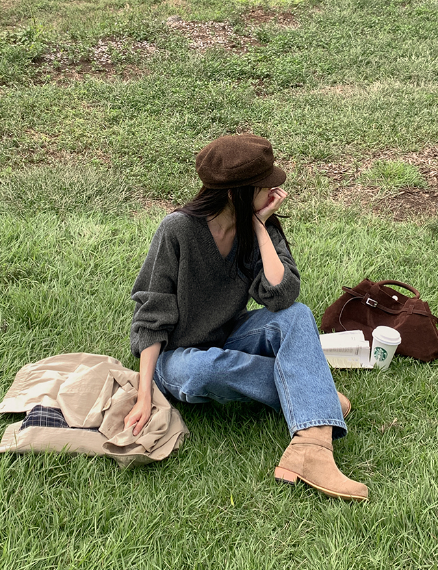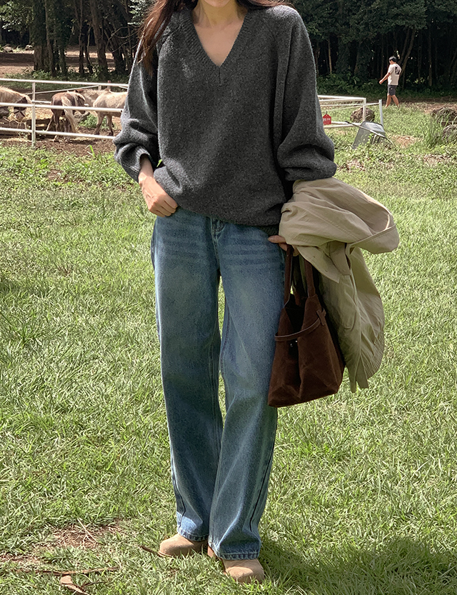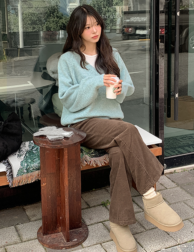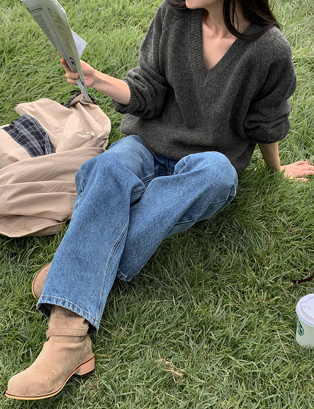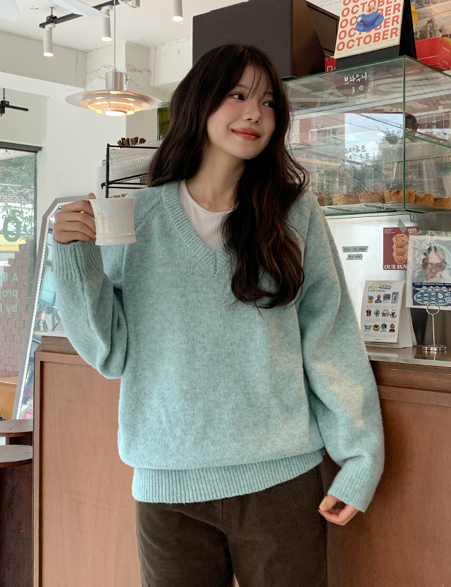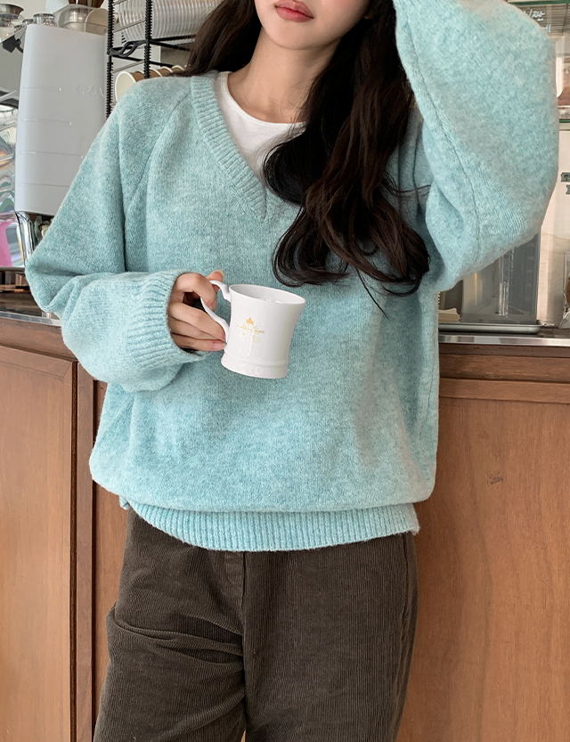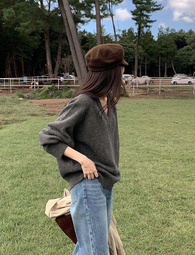포슬하루 V領 寬鬆 針織 84261