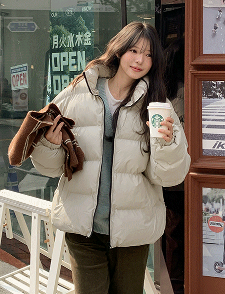 [남녀공용] 무드 매트 寬鬆 에코 레더 短 羽絨服 84808