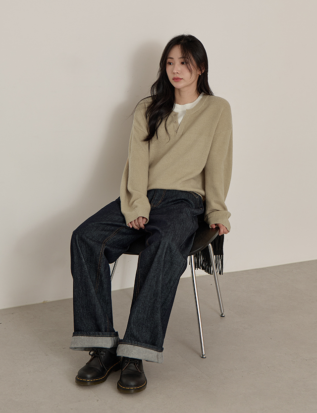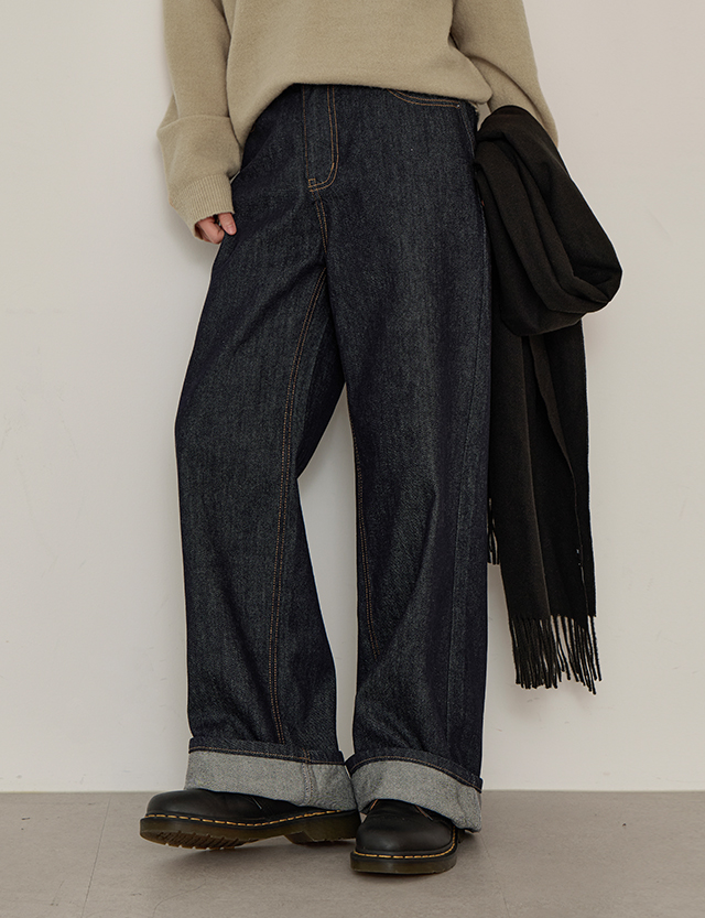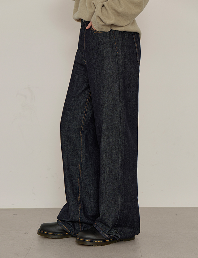 기본템 논페이드 鬆緊腰 牛仔 寬褲 84782