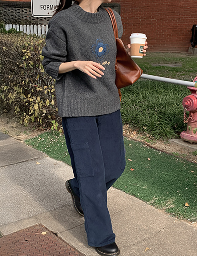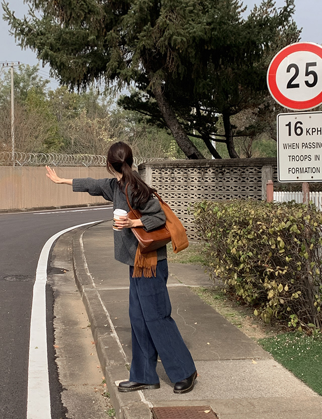 뉴데이 鬆緊腰 寬 燈芯絨 褲 84589