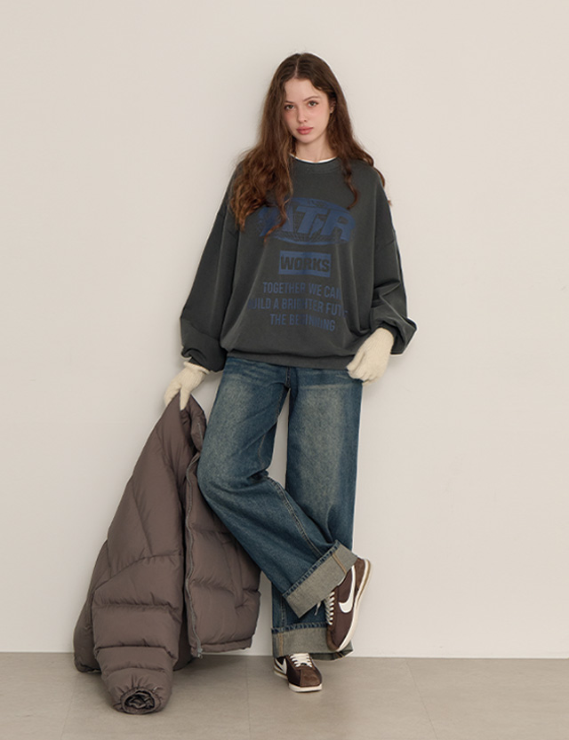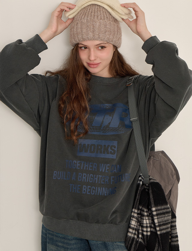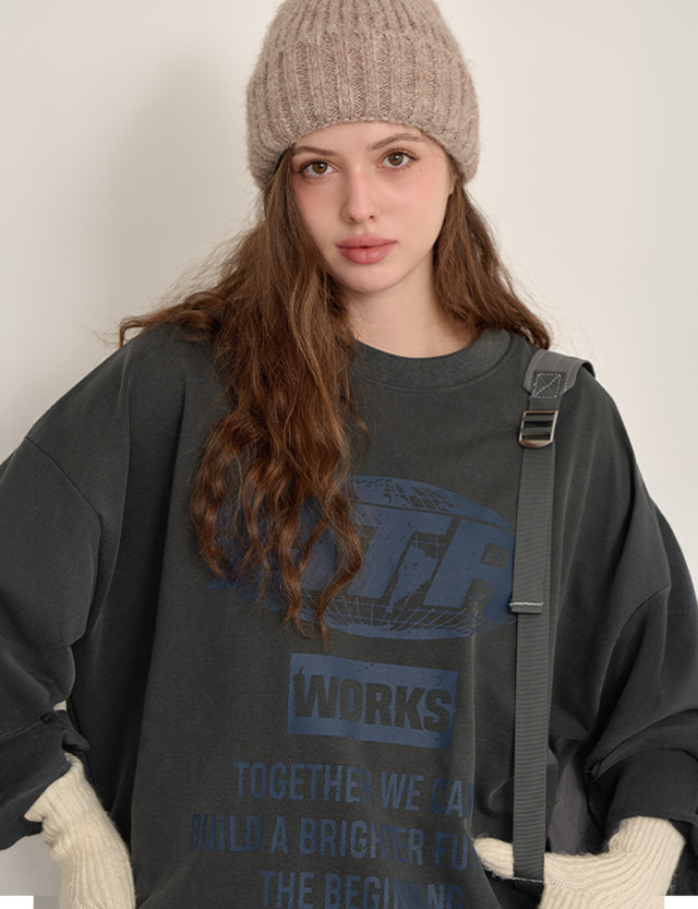 웍스 피그먼트 印花 리얼루즈핏 運動衫 84717