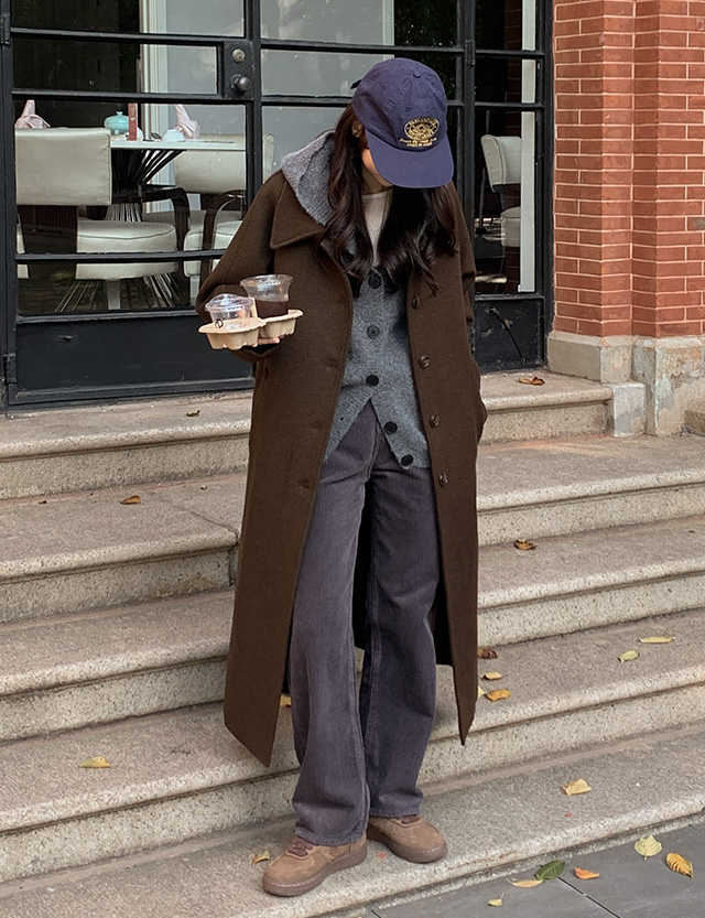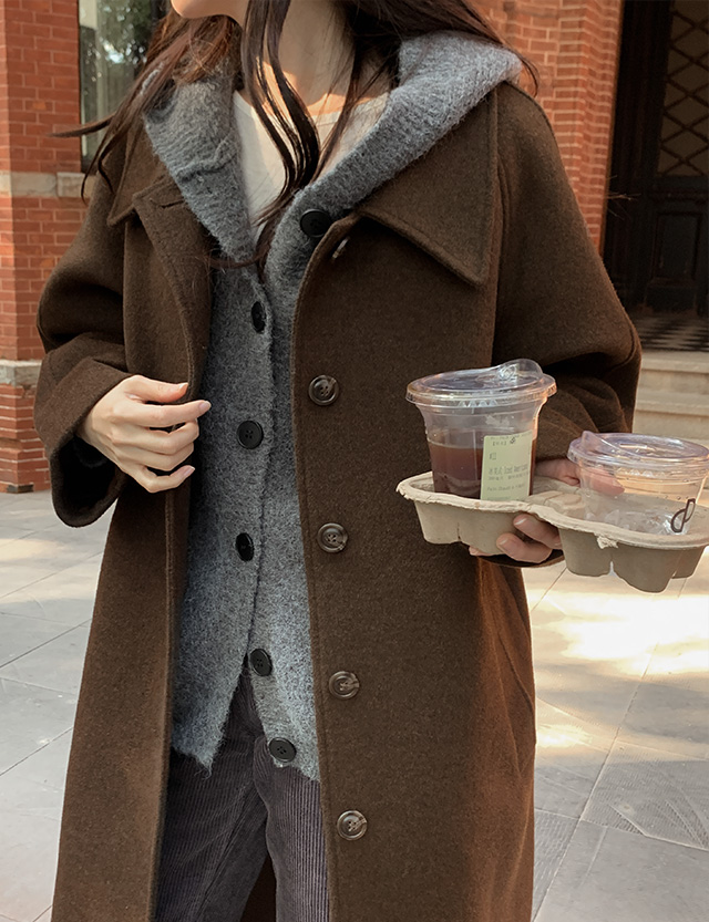 오브무드 插肩 羊毛 長款 呢子大衣 84619