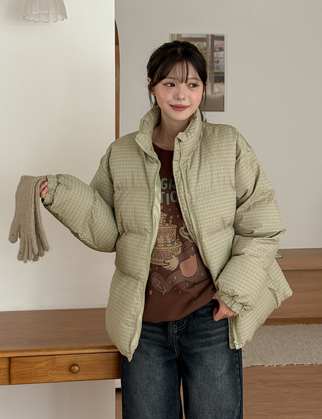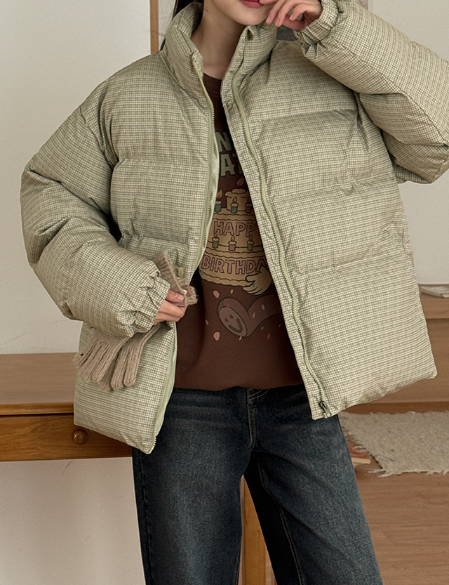 민초퍼지 格紋 羽絨服 拉鏈外套 84888