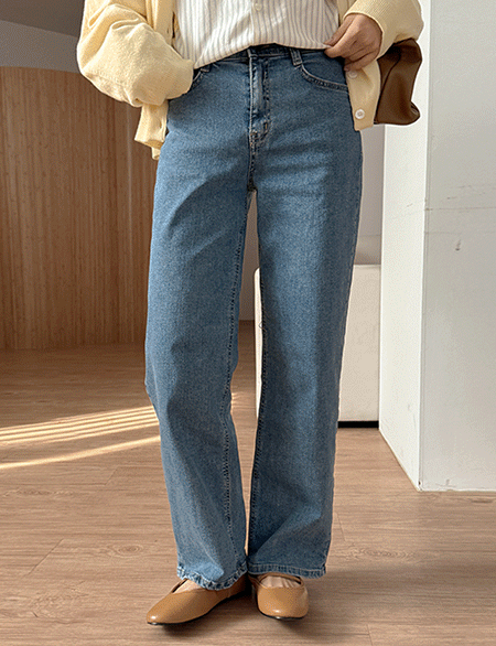 라피 鬆緊腰 세미와이드 牛仔 褲 86429