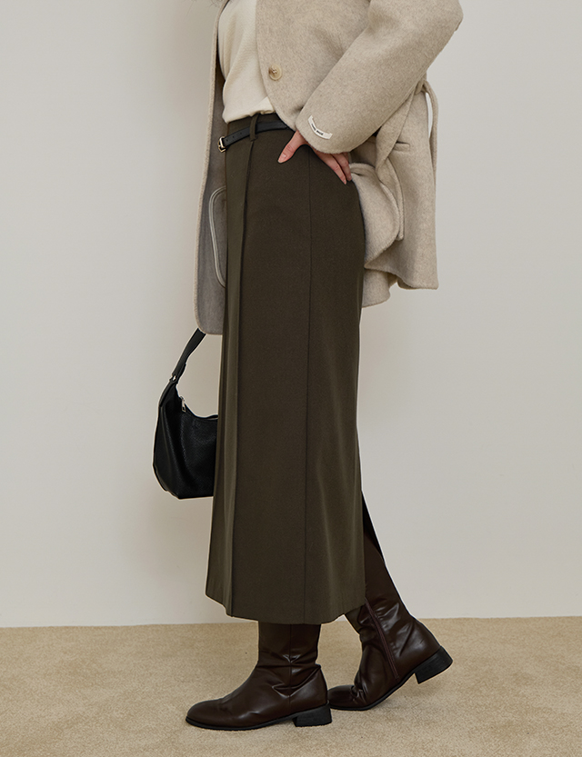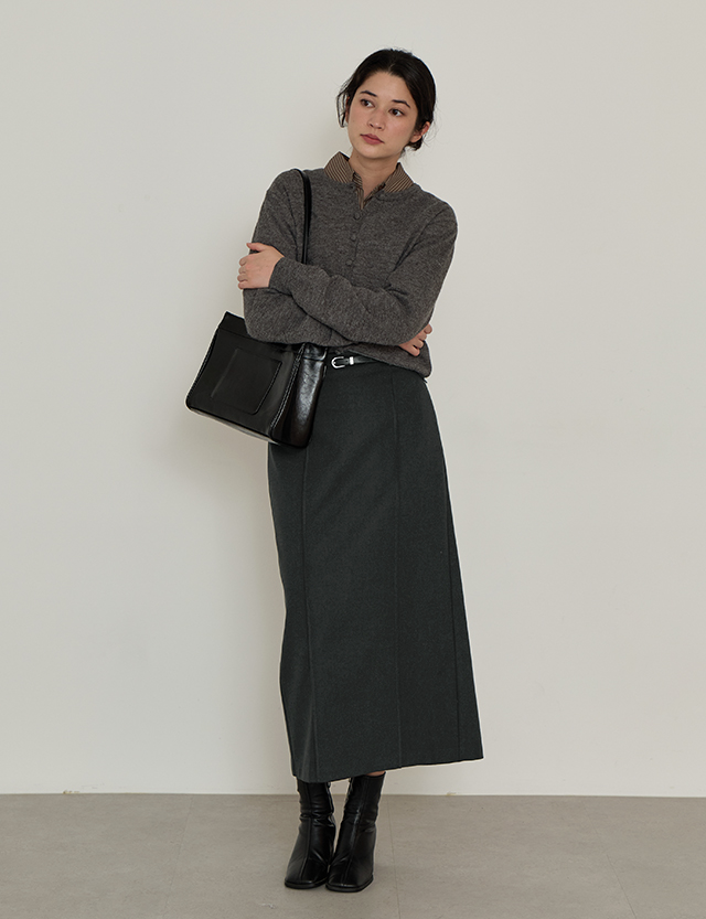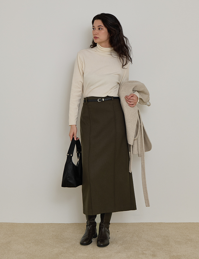 리쉬 鬆緊腰 H線條 羊毛 裙 84549