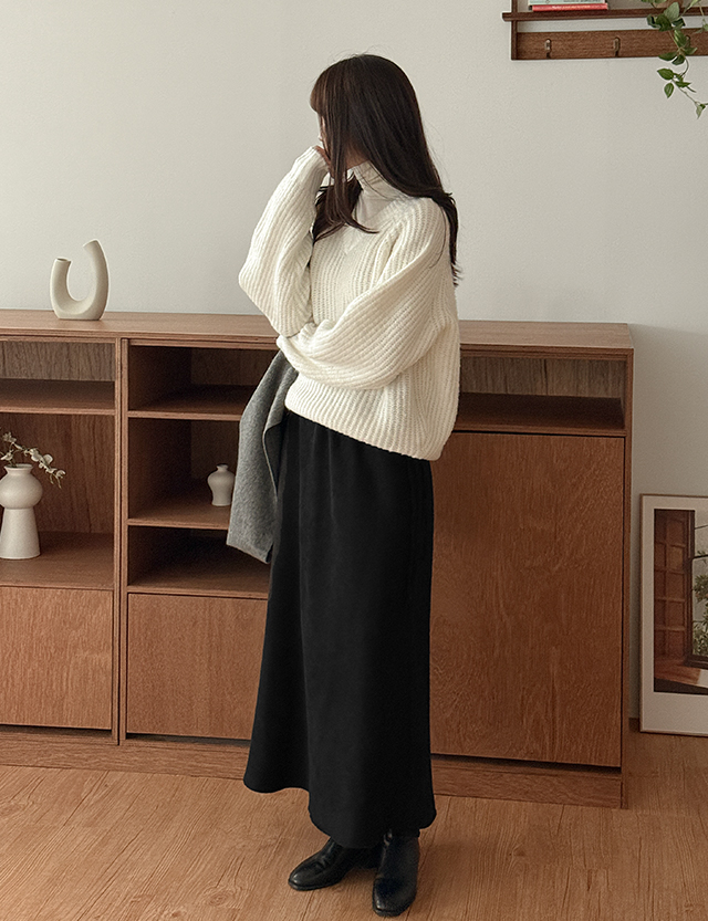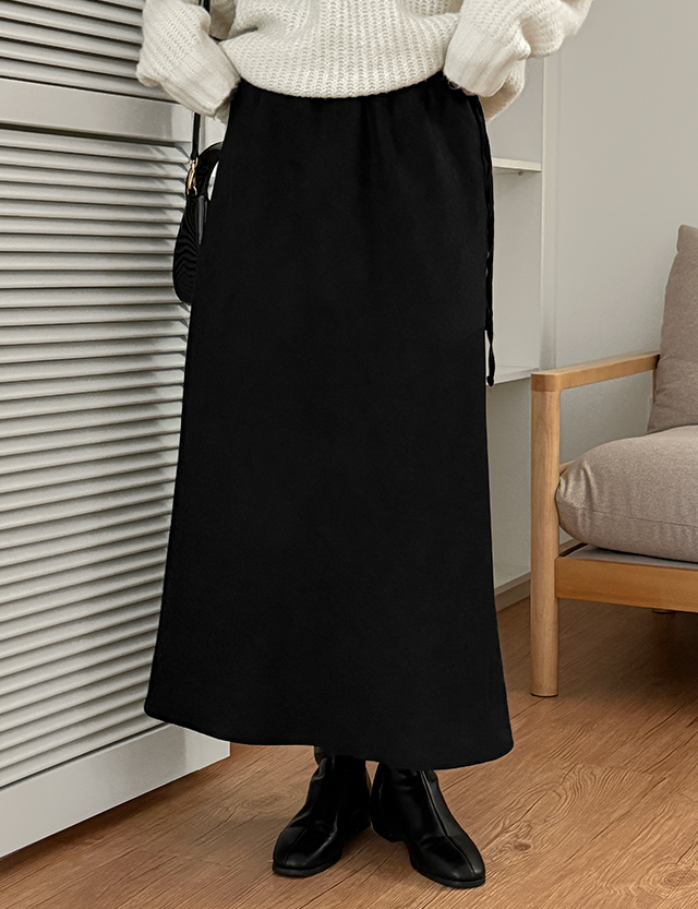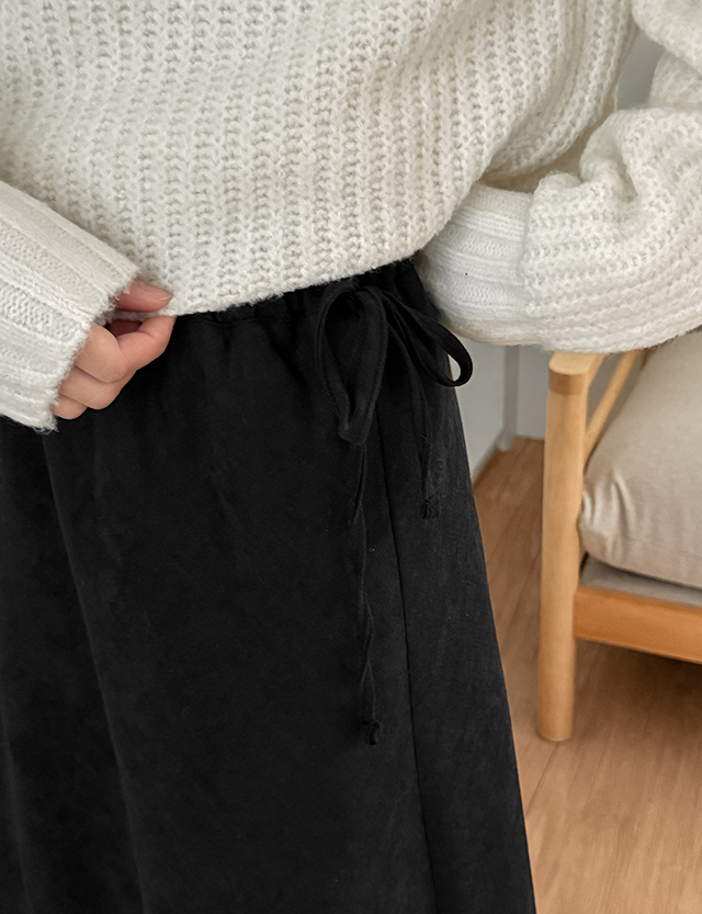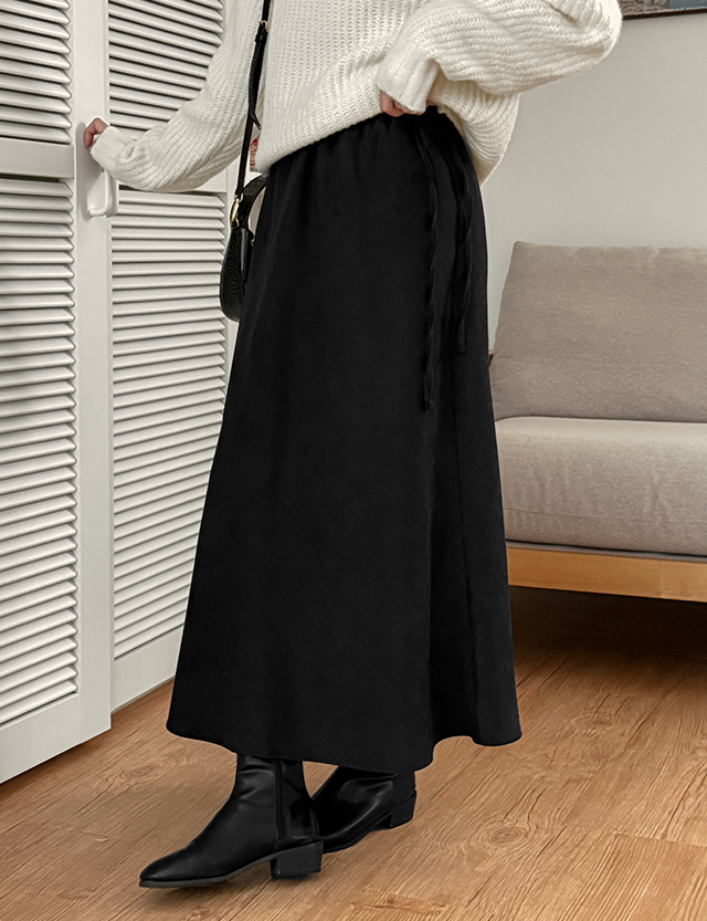 다이딜 鬆緊腰 翻毛皮 綁帶 長裙 84880