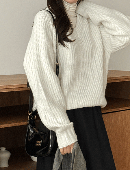 리코드 寬鬆 하찌 羊毛 V領 針織 84879
