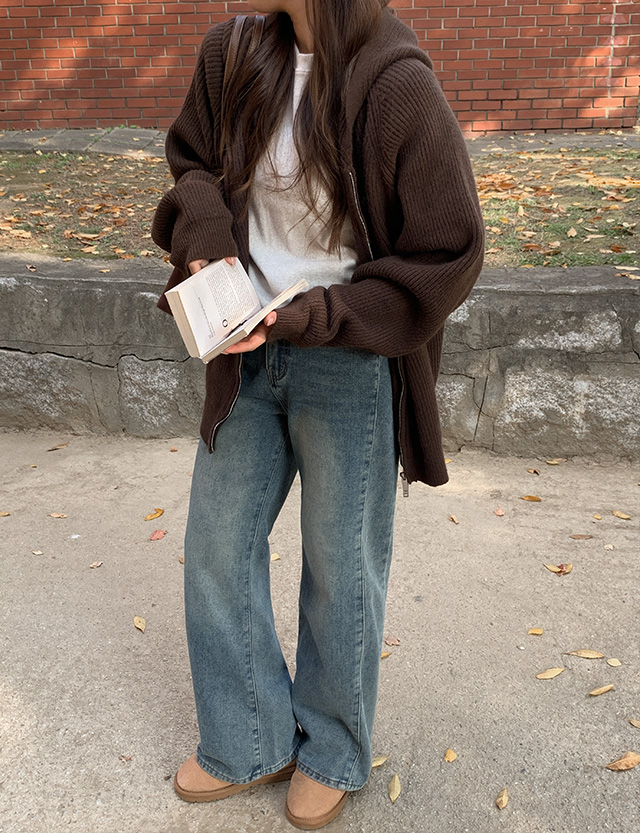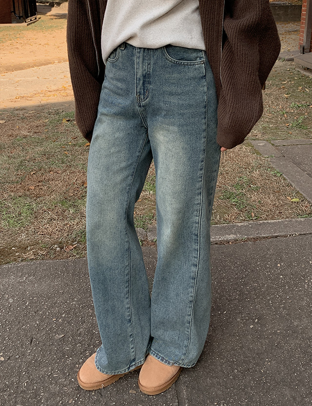 [2가지기장] 행디스 復古/仿舊 寬 加絨 牛仔 褲 84927