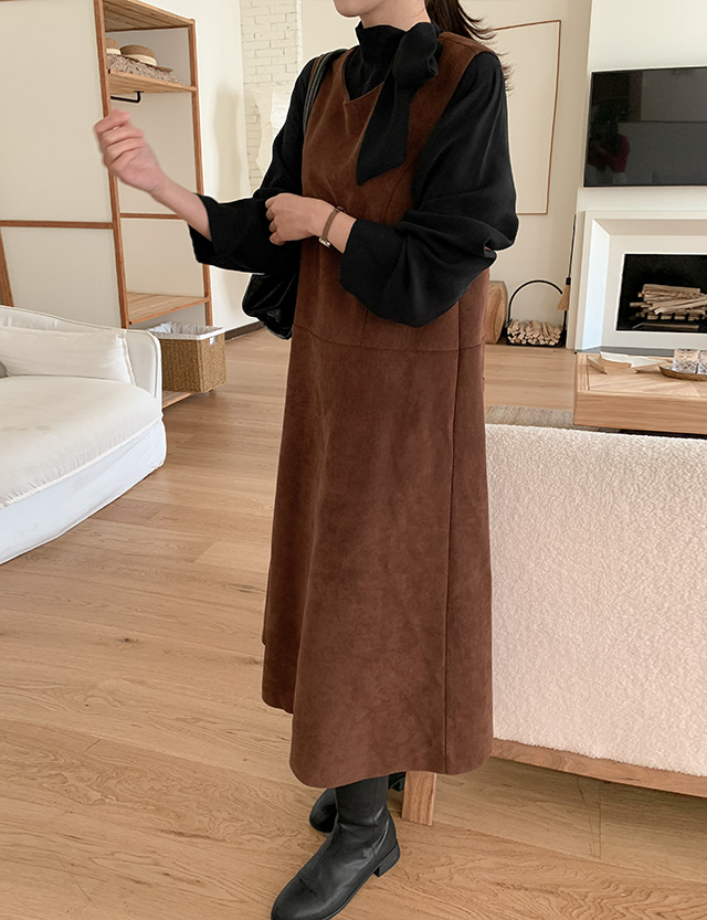 케나 翻毛皮 뷔스티에 長款 洋裝 79098