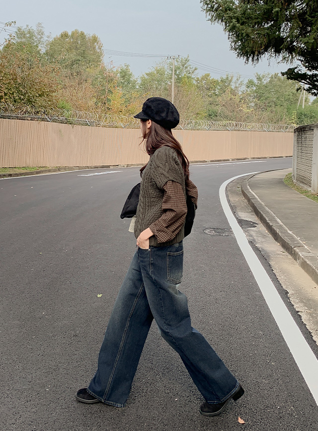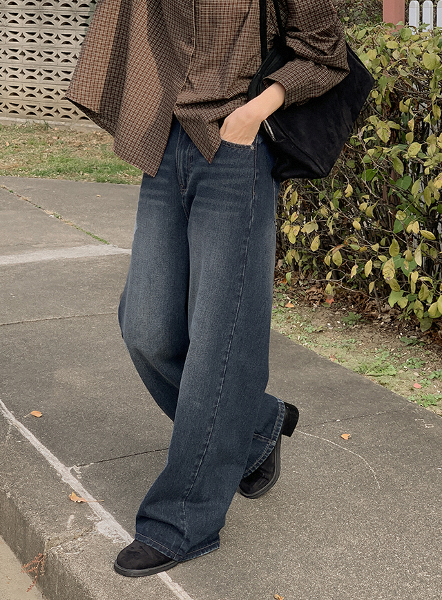 다크베이스 寬 鬆緊腰 牛仔 褲 84757