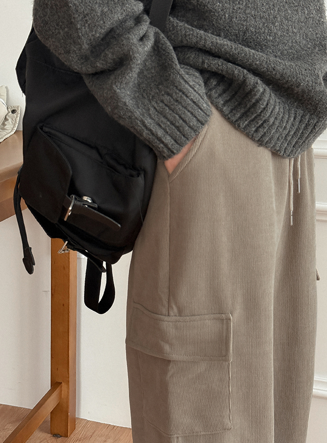데비티 鬆緊腰 寬 工裝褲 褲 84849