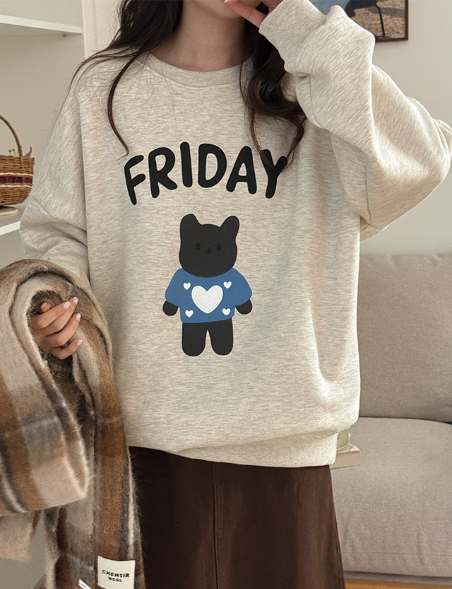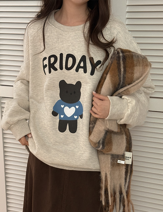 프라이 可愛風 基本款 加絨 印花 運動衫 84840