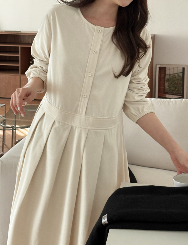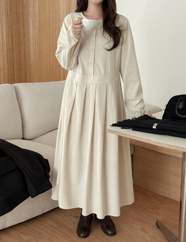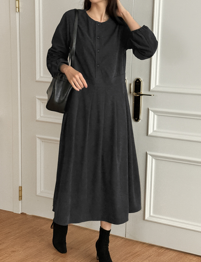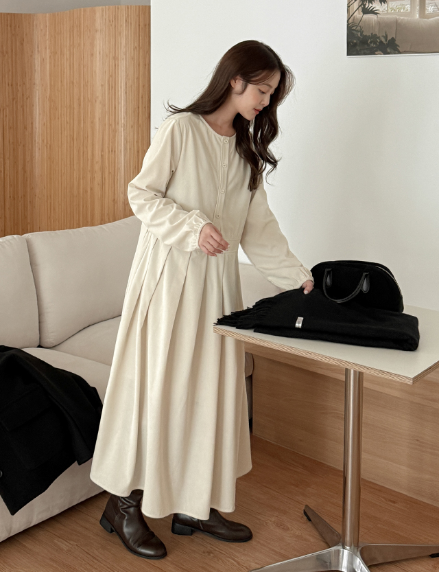 도르아 燈芯絨 百褶 長款 洋裝 84834