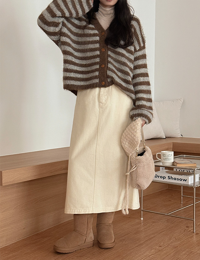 루슨 條紋 針織 寬鬆 開襟外套 84798